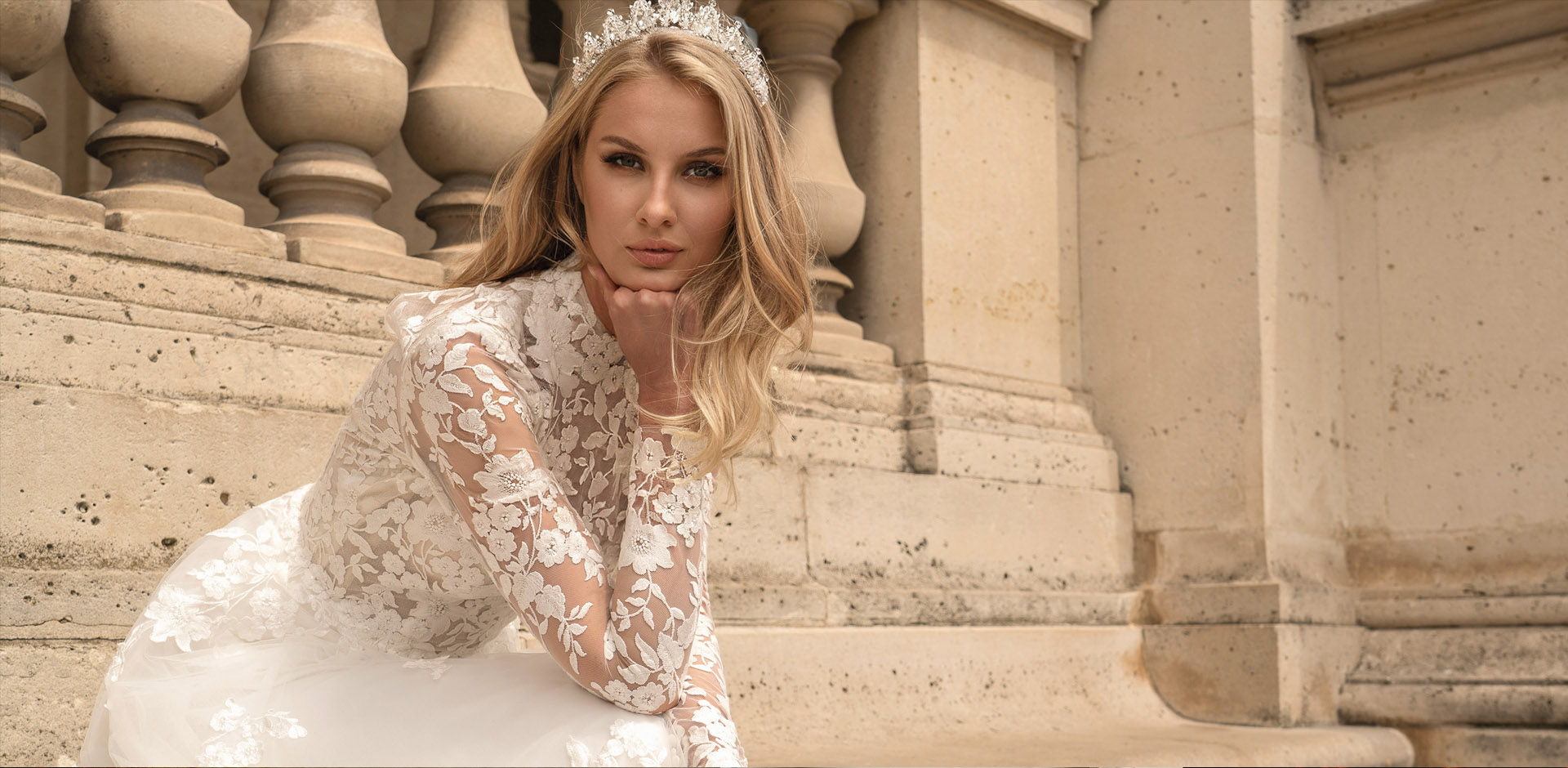 Koronkowe suknie ślubne emanują subtelnością i szlachetnością. Każde zdobienie, każdy warkocz, każdy ażur to pracowicie tkana opowieść. Wzory koronkowe, które zdobią nasze suknie, przywołują skojarzenia z pięknem natury - od delikatnych kwiatów po liście drzew. To tkanina, która sama w sobie jest dziełem sztuki.Koronka przynosi romantyczny urok do świata sukien ślubnych. Jej delikatność i zwiewność doskonale komponują się z atmosferą miłości, jaka unosi się w powietrzu podczas ślubu. Wzory koronkowe tworzą delikatne cienie na skórze, ukazując piękno kobiecej figury i nadając sukni subtelny charakter.
