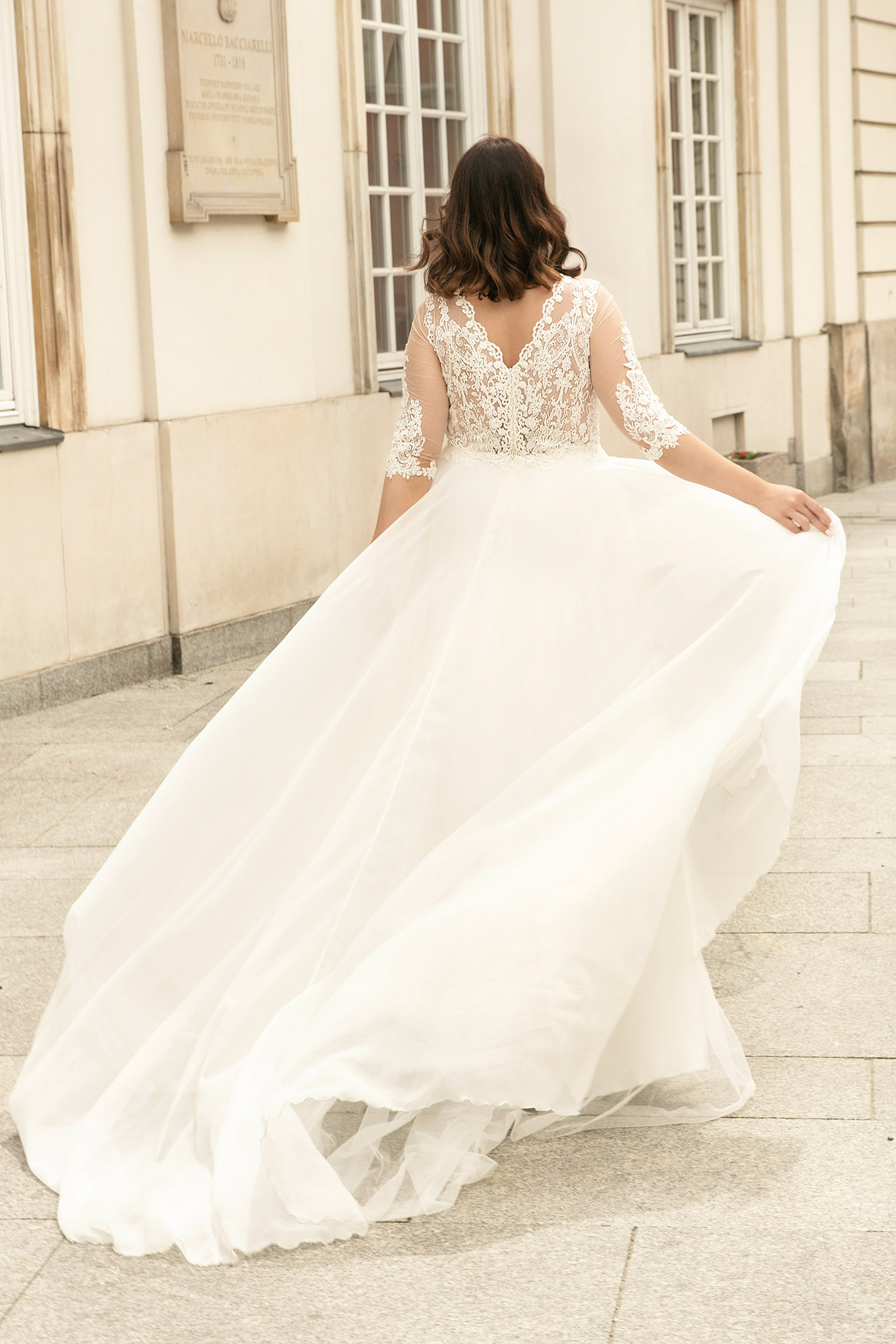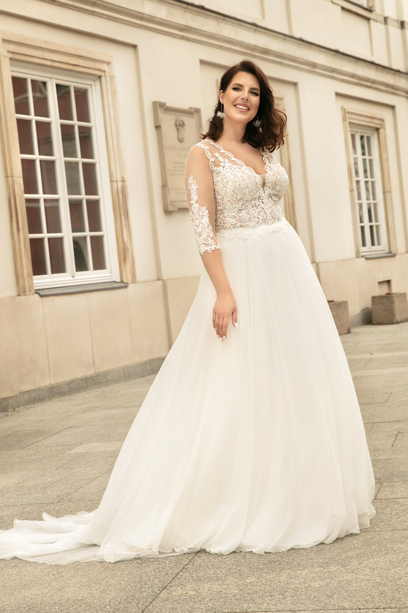 Bajkowo piękna zdecydowana kobiecość zamknięta w tej jednej sukni ślubnej. Gorset bogato zdobiony aplikacjami z haftu. Rękawy z tiulu cielistego pokryte aplikacjami. Dekolt przód, tył w kształcie litery V zmysłowo odkrywa szyję i plecy. Spódnica z cienkiego szyfonu i tiulu. W tym modelu będziesz emanowałą eterycznym pięknem i kobiecością.