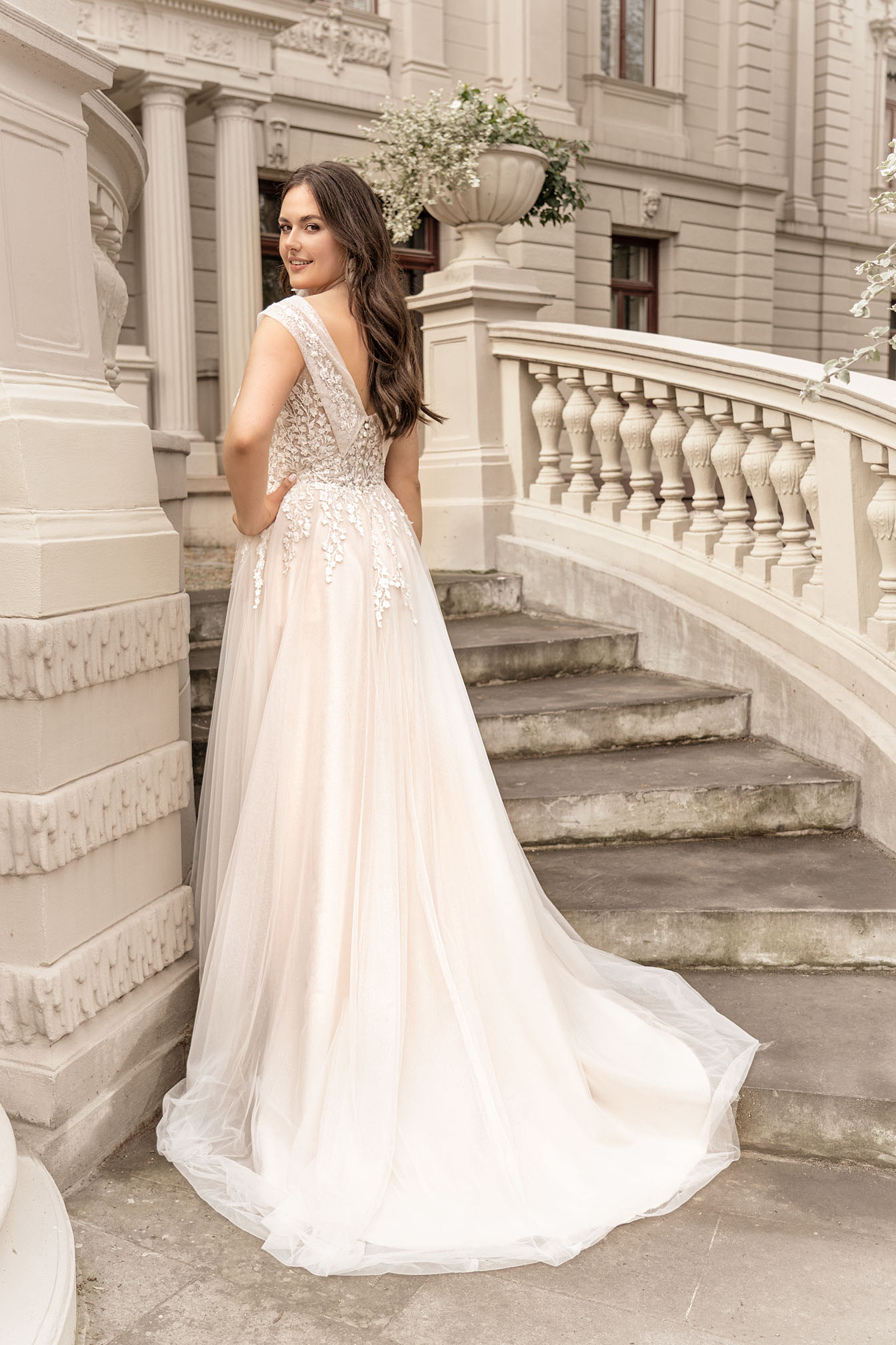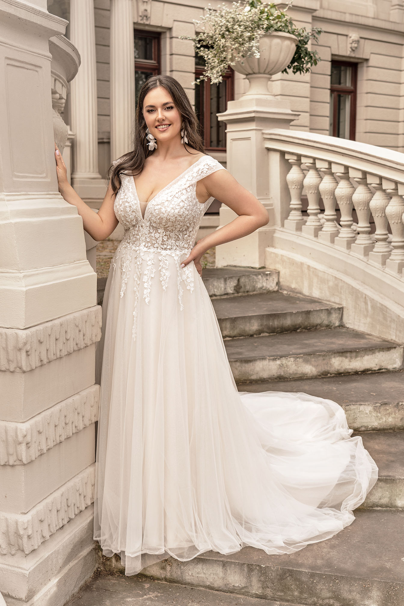 Koronkowa suknia ślubna księżnicka z kolekcji Plus Size powstała z miłości do delikatnego stylu i romantyczności. Suknia ślubna z fiszbinami zapewni Ci pełen komfort oraz wygodę przez cały dzień, a jednocześnie podkreśli Twoje kobiece kształty. Suknia ślubna z krótkimi, delikatnymi rękawkami jest propozycją idealną na ślub w plenerze oraz dla Panien Mlodych, które czują się pewniej w lekko zasłoniętych ramionach. Klasyczna suknia ślubna ze zwiewną spódnicą, wykonanną z delikatnego szyfonu doda Ci magicznego uroku podczas tańca i da Ci gwarancję nietuzinkowego i zjawiskowego wyglądu. Klasyczna suknia ślubna księżniczka z kolekcji Lovlely sprawdzi się idealnie dla każdej Panny Młodej.