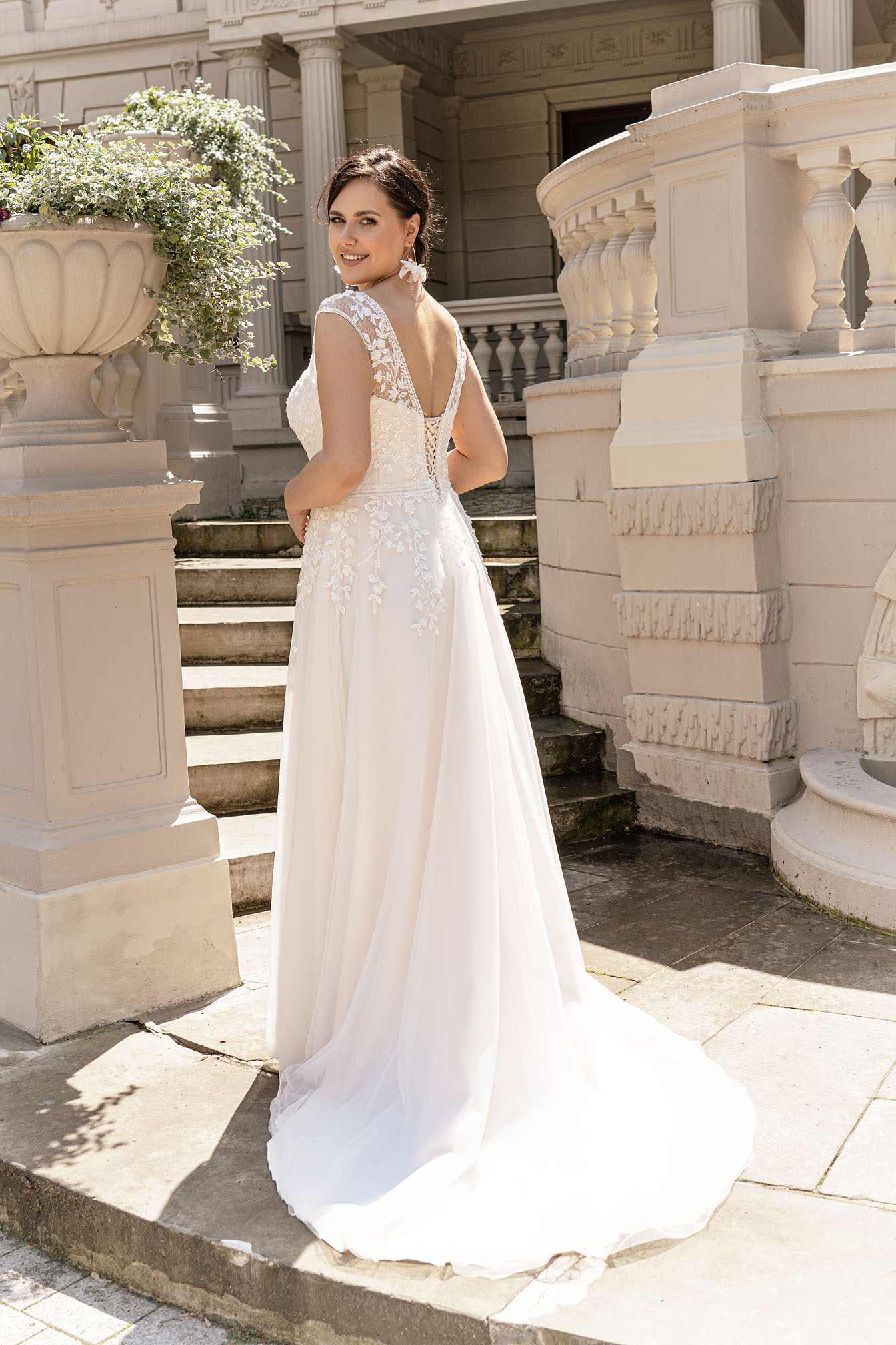 Klasyczna suknia ślubna z dekoltem w literę V to idealna propozycja dla absolutnie mażdej Panny Młodej. Świetnie sprawdzi się na ślub w plenerze jak i na sali. Suknia ślubna z gorsetem pozwoli Ci na wyeksponowanie Twojej figury, nie psując przy tym efektw wizualnych. Koronkowa suknia ślubna ze spódnicą szyfonową zapewnią Ci pełen komfort podczas tańca do bialego rana. Romantyczna suknia ślubna to wybór, dzięki któremu będziesz czuła się wyjątkowo.