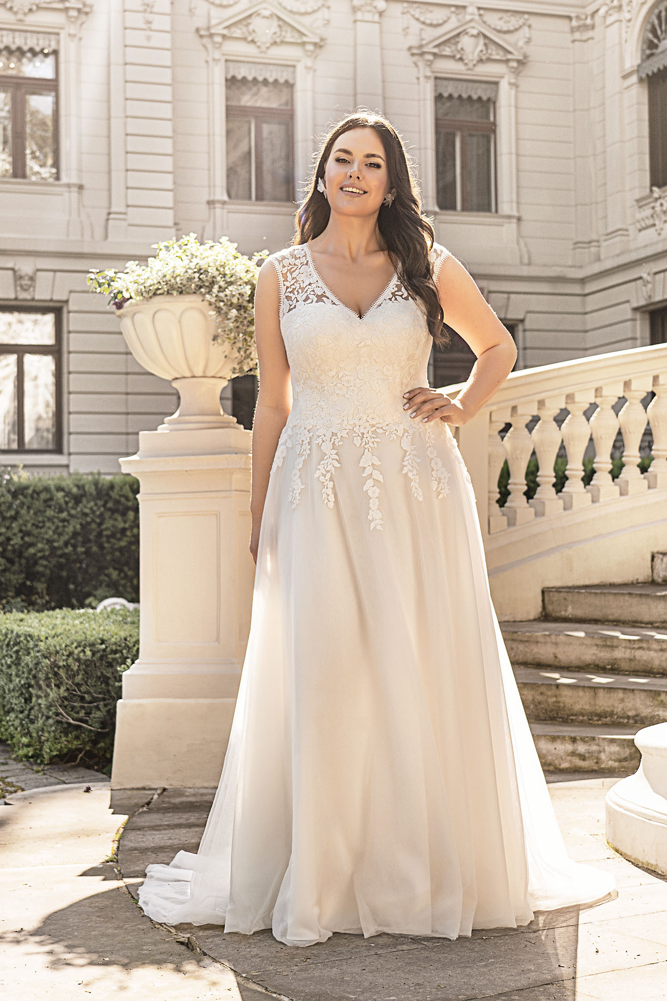 Klasyczna suknia ślubna z dekoltem w literę V to idealna propozycja dla absolutnie mażdej Panny Młodej. Świetnie sprawdzi się na ślub w plenerze jak i na sali. Suknia ślubna z gorsetem pozwoli Ci na wyeksponowanie Twojej figury, nie psując przy tym efektw wizualnych. Koronkowa suknia ślubna ze spódnicą szyfonową zapewnią Ci pełen komfort podczas tańca do bialego rana. Romantyczna suknia ślubna to wybór, dzięki któremu będziesz czuła się wyjątkowo.