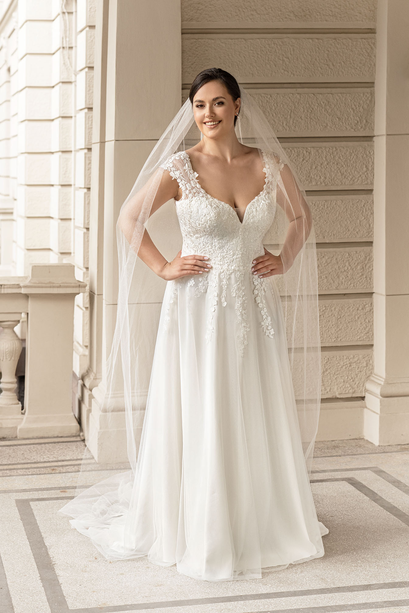 Klasyczna suknia ślubna z głębokim dekoltem to idealna propozycja dla absolutnie każdej Panny Młodej. Świetnie sprawdzi się na ślub w plenerze jak i na sali. Suknia ślubna z gorsetem pozwoli Ci na wyeksponowanie Twojej figury, nie psując przy tym efektw wizualnych. Koronkowa suknia ślubna ze spódnicą szyfonową zapewnią Ci pełen komfort podczas tańca do bialego rana. Romantyczna suknia ślubna to wybór, dzięki któremu będziesz czuła się wyjątkowo.