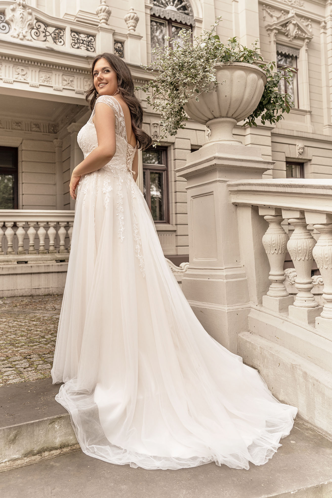Klasyczna suknia ślubna z dekoltem w literę V to idealna propozycja dla absolutnie mażdej Panny Młodej. Świetnie sprawdzi się na ślub w plenerze jak i na sali. Suknia ślubna z gorsetem pozwoli Ci na wyeksponowanie Twojej figury, nie psując przy tym efektw wizualnych. Koronkowa suknia ślubna ze spódnicą tiulową zapewnią Ci pełen komfort podczas tańca do bialego rana. Romantyczna suknia ślubna to wybór, dzięki któremu będziesz czuła się wyjątkowo.