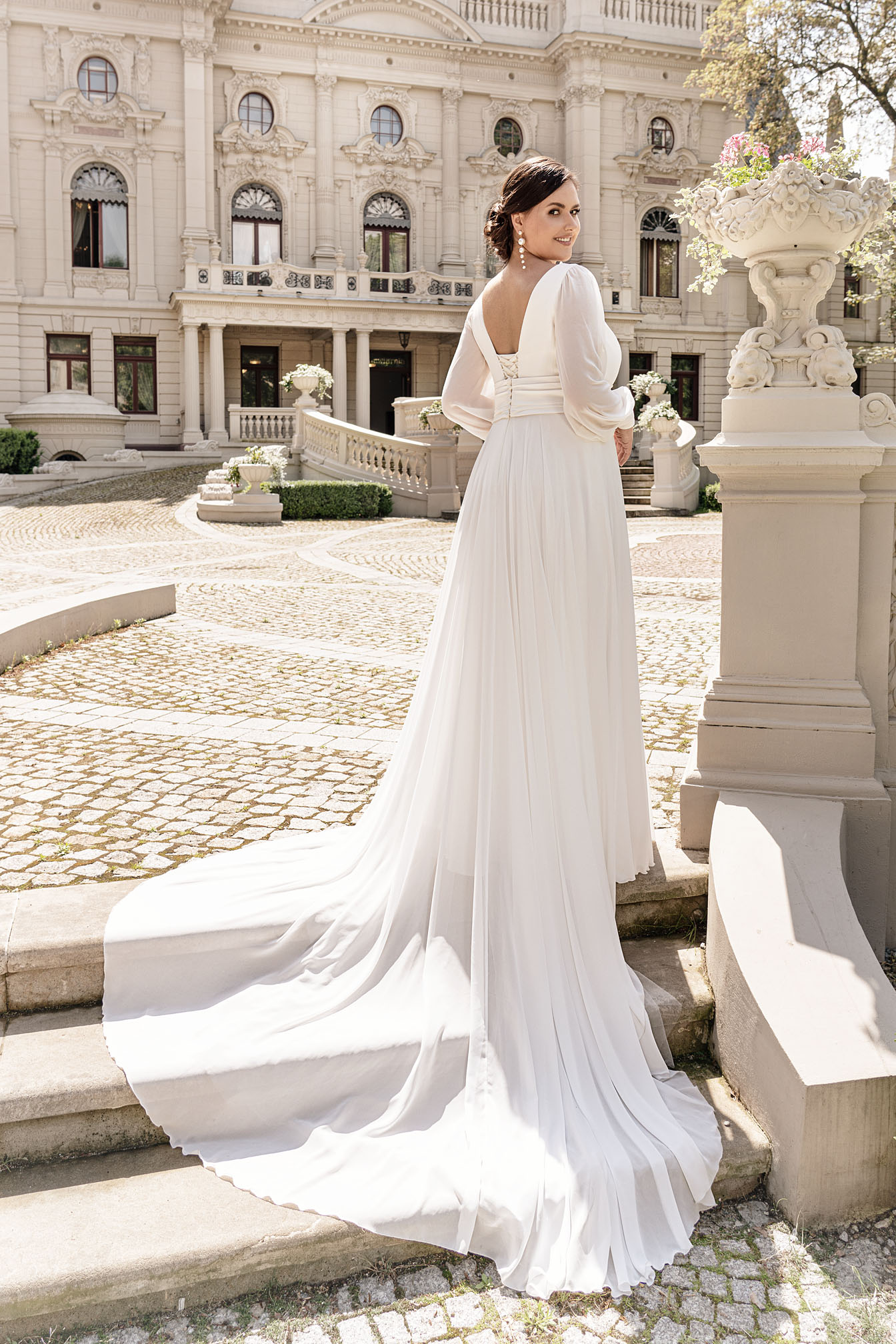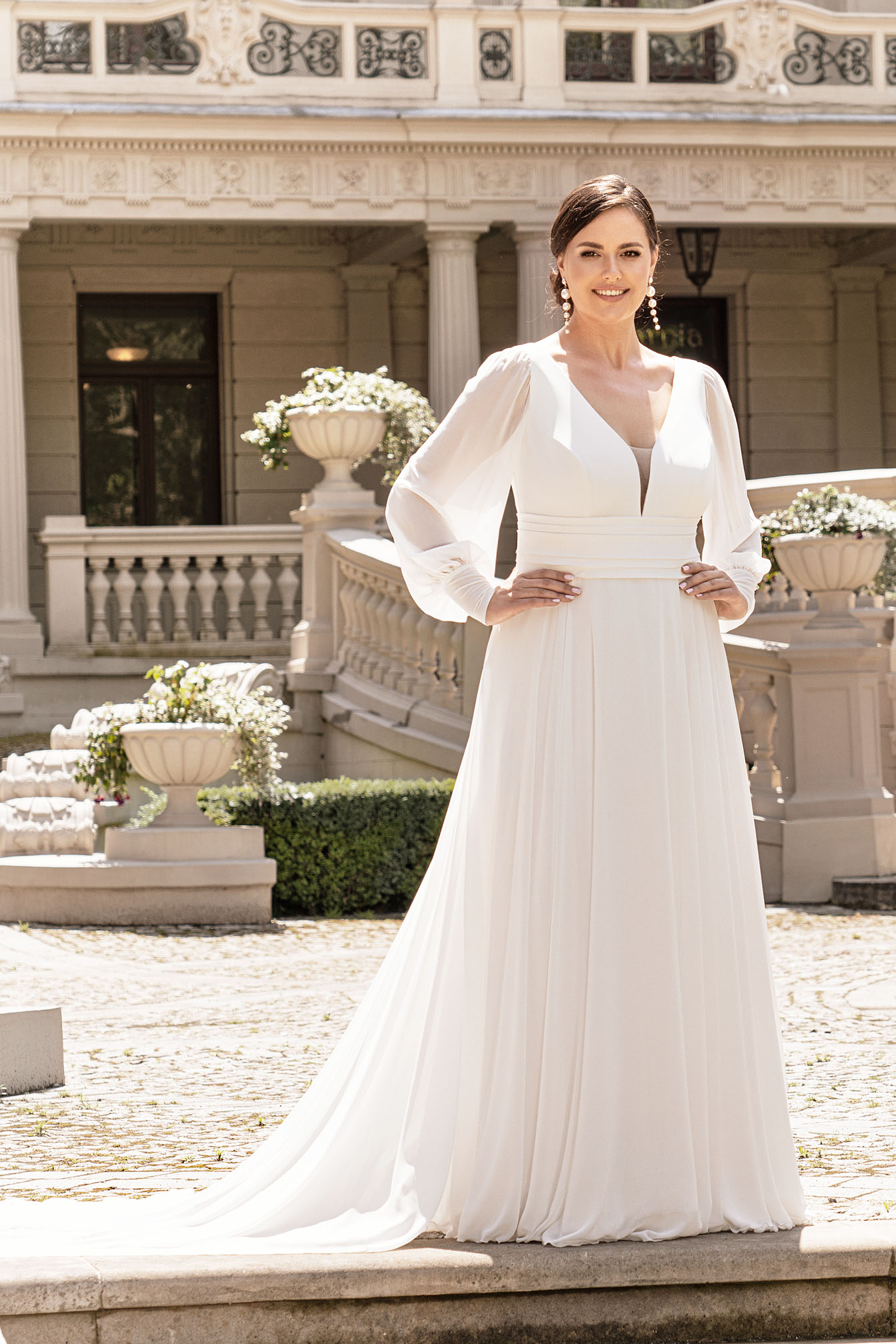 Klasyczna suknia ślubna w stylu simple chic to propozycja idealna dla ułożonych, minimalistycznych Panien Młodych. Suknia ślubna z długim, delikatnym rękawkiem da Ci pełen komfort jeśli wolisz przysłonić swoje ręce czy ramiona. Suknia ślubna z głębokim dekoltem w kształcie litery V podkreśli Twoje atuty i zaakcentuje Twoją figurę. Delikatna tiulowa spódnica w sukni ślubnej sprawdzi się idealnie podczas całonocnego tańca dzięki swojej lekkości i prostocie. Minimalistyczna suknia ślubna Plus Size to suknia ślubna, której nie oprze się żadna Panna Młoda.