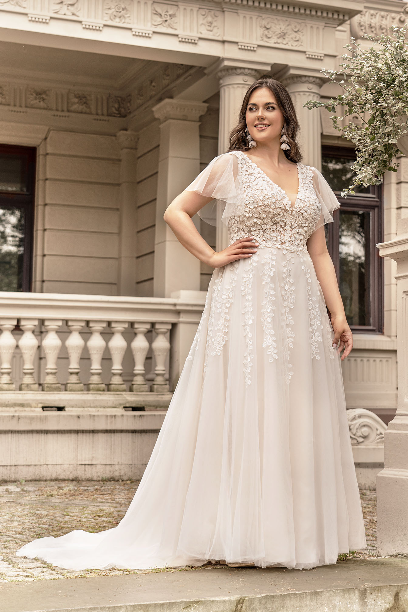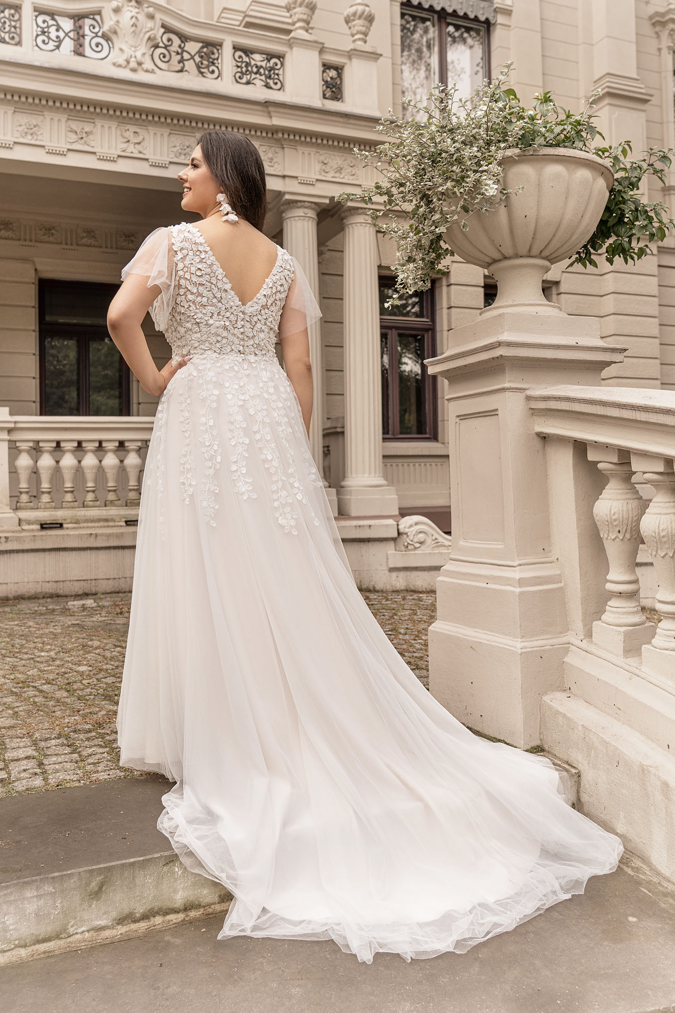 Koronkowa suknia ślubna boho z kolekcji Plus Size powstała z miłości do delikatnego stylu i romantyczności. Suknia ślubna z fiszbinami zapewni Ci pełen komfort oraz wygodę przez cały dzień, a jednocześnie podkreśli Twoje kobiece kształty. Suknia ślubna z krótkimi, zwiewnymi rękawkami jest propozycją idealną na ślub w plenerze oraz dla Panien Mlodych, które czują się pewniej w zasłoniętych ramionach. Klasyczna suknia ślubna z lekką zwiewną spódnicą, wykonanną z delikatnego szyfonu doda Ci magicznego uroku podczas tańca i da Ci gwarancję nietuzinkowego i zjawiskowego wyglądu. Klasyczna suknia ślubna z kolekcji Lovlely sprawdzi się idealnie dla każdej Panny Młodej.