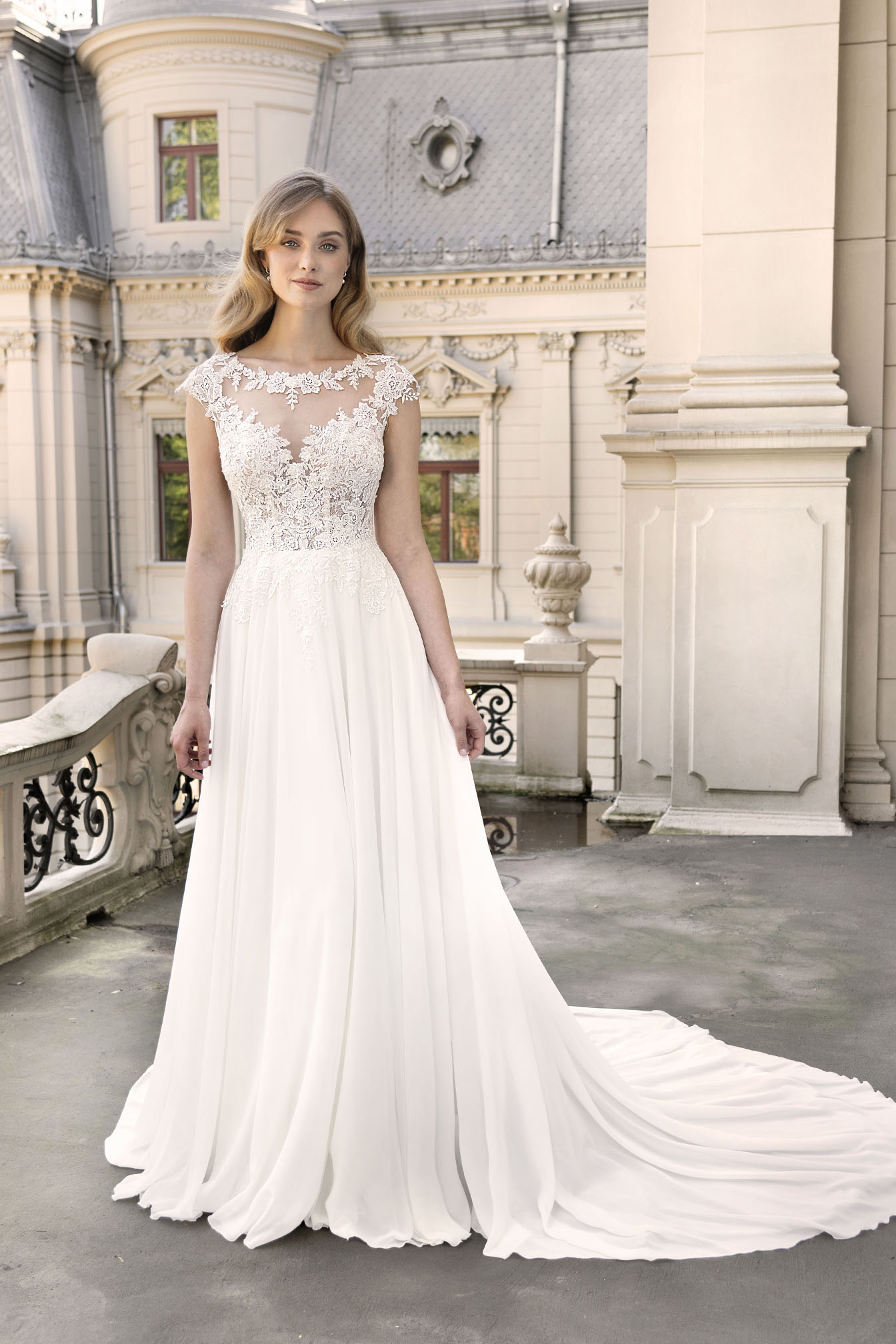Elegancka suknia ślubna ze zdrobionym dekoltem to propozycja idealna dla każdej panny młodej. Klasyczna suknia w romantycznym stylu. Koronkowa suknia ślubna z tiulową spódnicą sprawi, że poczujesz się wyjątkowo w tym ważnym dniu. Delikatna i zwiewna suknia ślubna pozwoli Ci na pełen komfort tak długo, ile go potrzebujesz. Suknia ślubna z dekoltem w łódkę oraz z koronką na plecach jest świetnym modelem dla każdej figury i każdego kobiecego ciała. Podkreśl swoje atuty romantyczną suknią ślubną i wyglądaj niepowtarzalnie!