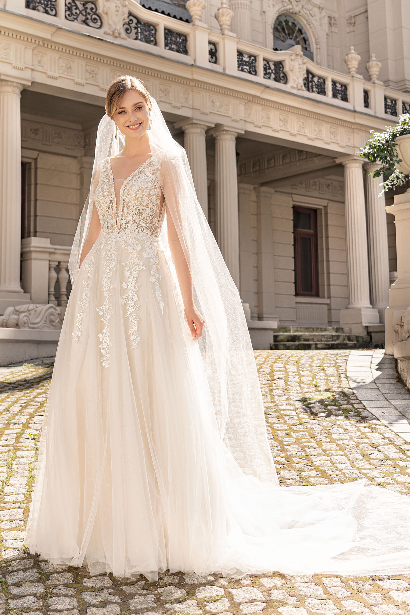 Koronkowa suknia ślubna na ramiączkach w stylu boho to propozycja idealna dla każdej Panny Młodej. Suknia ślubna w romantycznym stylu podkreśli Twój delikatny charakter, a piękne zdobienia Twoją urodę! Koronki i zdobienia na sukni ślubnej są dobrane idealnie to całej sukni, a każda z aplikacji została naszyta z dbałością o każdy szczegół. Klasyczna suknia ślubna w kształcie litery A sprawdzi się świetnie przy uroczystości w sali weselnej, jak i na zewnątrz. Głęboki dekolt w sukni ślubnej podkreśli Twoją talię, a odkryte plecy wysmuką całą sylwetkę. Spełnij marzenia o wymarzonej sukni ślubnej i wybierz lekką suknię ślubną boho!