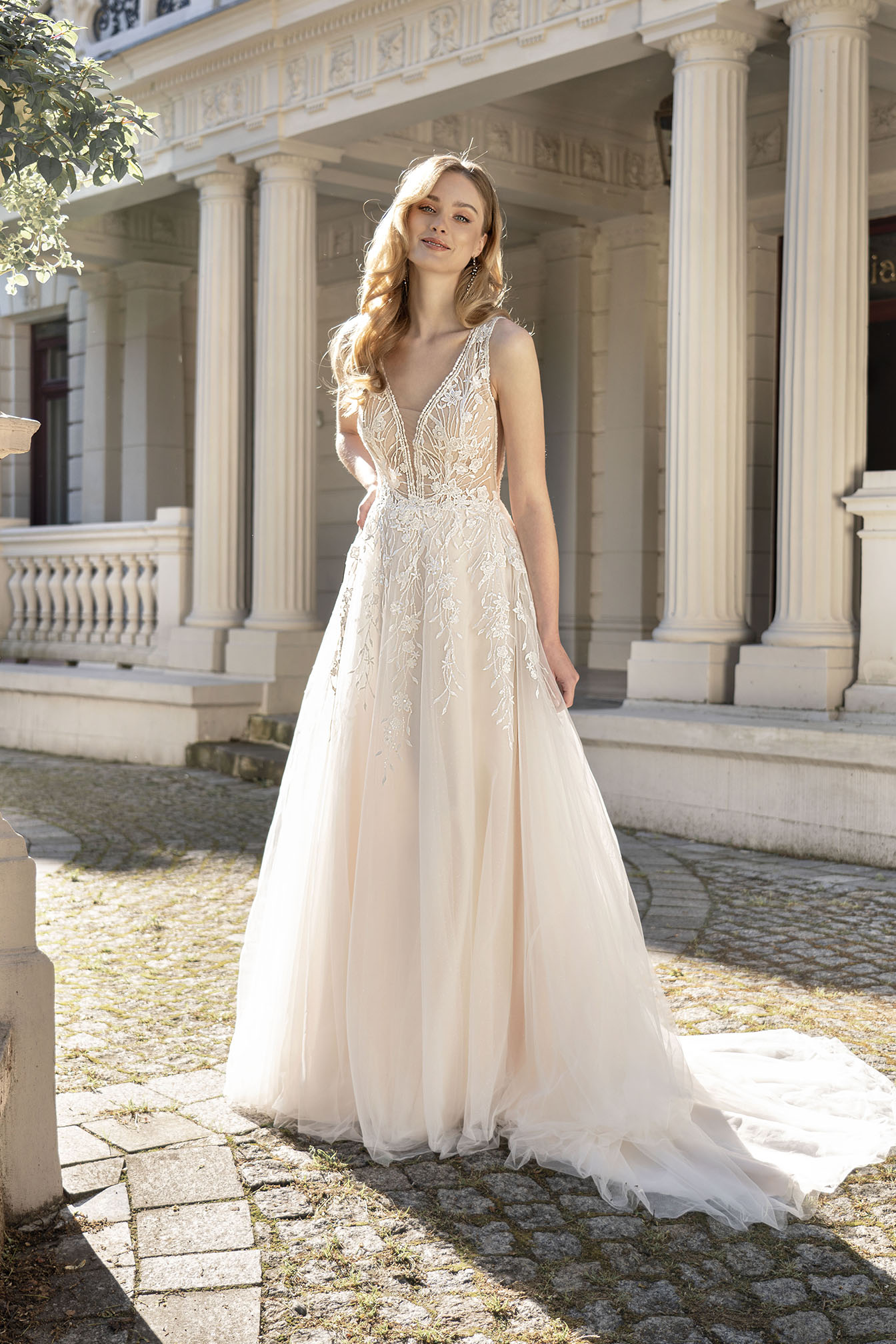 Koronkowa suknia ślubna na ramiączkach idealna dla klasycznej panny młodej. Delikatnie zdobiona suknia ślubna podkreśli Twoje walory nie podkreślając mniej reprezentatywnych części Twojego ciała. Szerokie ramiączka sprawdzą się idealnie u kobiet z węższą górą, gdyż optycznie lekko porzeszy Twoje ramiona. Suknia ślubna z odkrytymi plecami to idealna propozycja na gorącą atmosferę towarzyszącą w tym wyjątkowym dniu. Elegancka suknia ślubna to propozycja, która nie umknie żadnej pannie młodej.