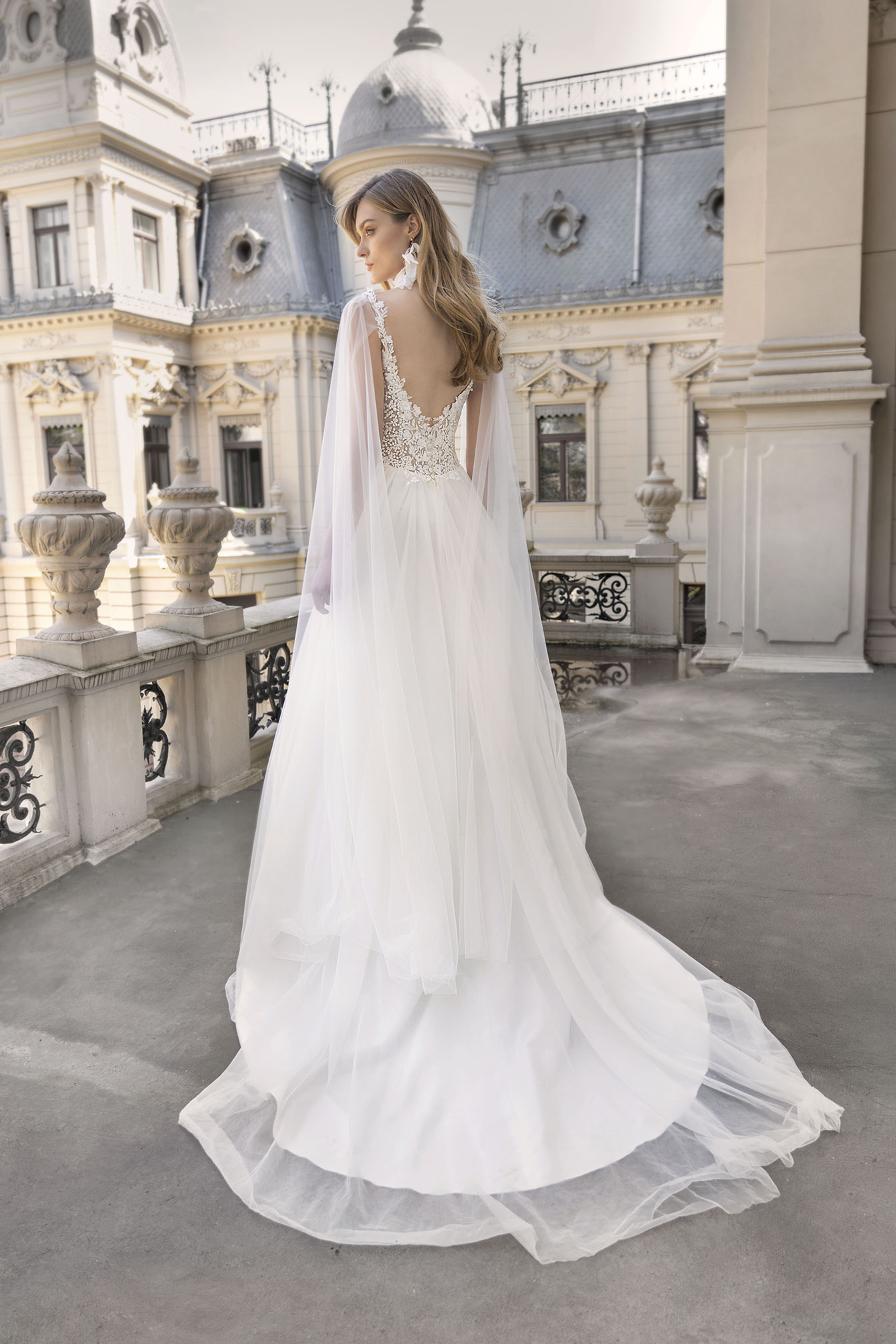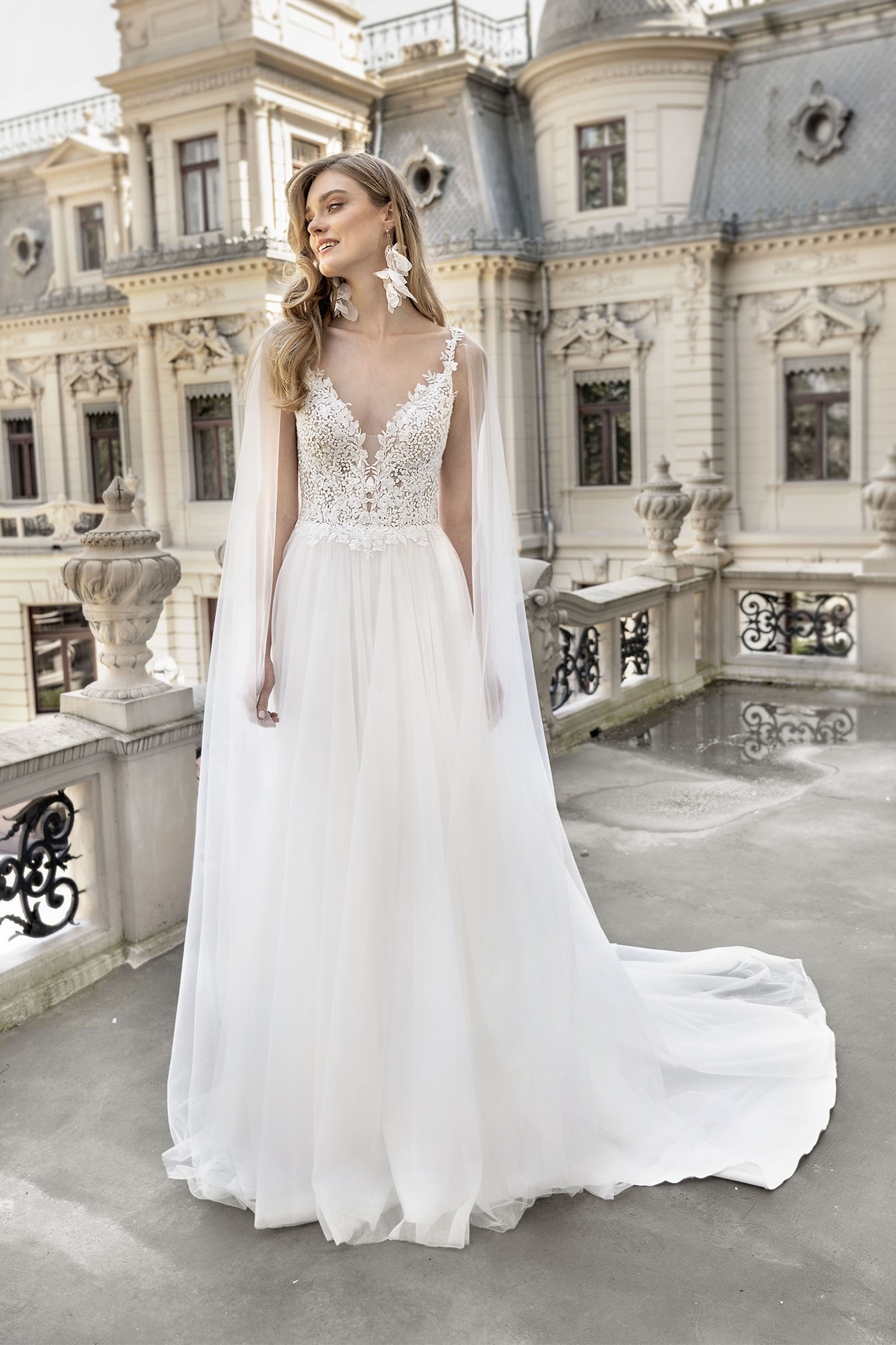 Koronkowa suknia ślubna z głębokim dekoltem to idealna propozycja dla absolutnie każdej Panny Młodej. Świetnie sprawdzi się na ślub w plenerze jak i na sali. Suknia ślubna z fiszbinami podkreśli Twoją figurę, jednocześnie zapewniając Ci pełną wygodę przez cały dzień. Zdobiona suknia ślubna z doczepianymi rękawkami - jak z bajki! Zwiewne rękawki dodadzą Ci wyjątkowego wyglądu, który możesz zmienić w każdej chwili odczepiając je! Koronkowe zdobienia i aplikacje, którymi pokryta jest górna część sukni ślubnej, w delikatny sposób przyzdobią całość, a klasyczna suknia ślubna na ramiączkach nie będzie nudna. Przyjemny materiał, z którego wykonana jest suknia ślubna boho lekko powiewa na wietrze, podkreślając przy tym Twój wyjątkowy wygląd. Romantyczna suknia ślubna boho to wybór, dzięki któremu będziesz czuła się wyjątkowo.