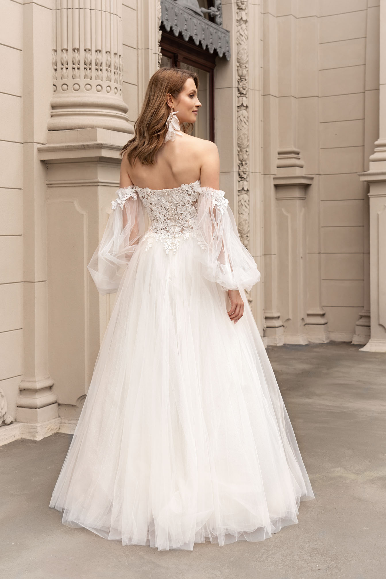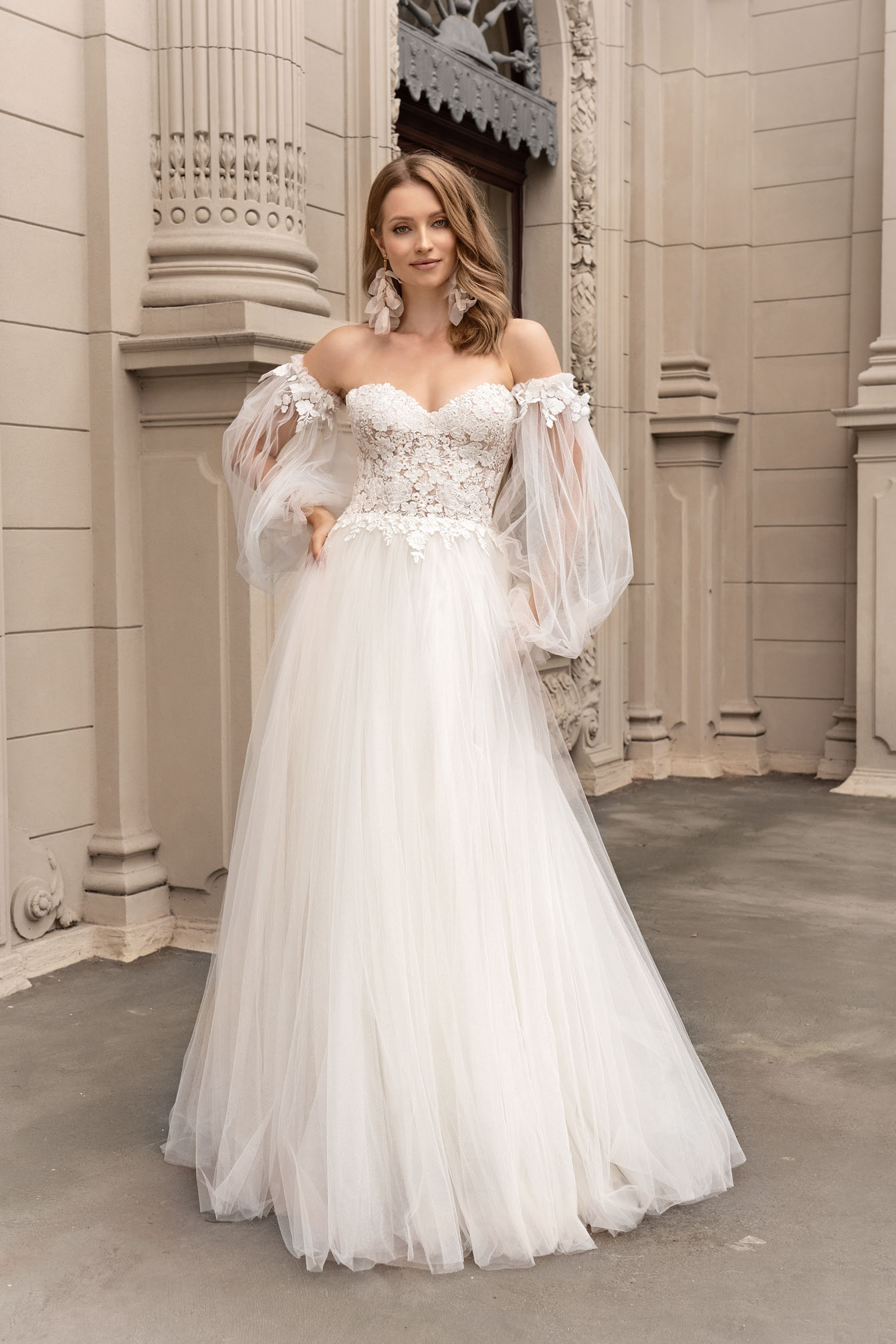Koronkowa suknia ślubna w stylu boho to z pewnością marzenie niejednej Panny Młodej. Suknia ślubna w stylu boho dla każdej delikatnej, a jednocześnie pewnej siebie kobiety. Gorsetowa suknia ślubna z romantycznymi, rękawkami, które z pewnością dodają jej uroku. Bufiaste rękawki przy sukni slubnej nie są obowiązkowym elementem. Pamiętaj, że możesz je zdjąc i całkowicie zmienić wygląd sukni. Poczuj się wyjątkowo w dniu ślubu i postaw na suknię ślubna z zapinanym gorsetem. Suknia ślubna boho to wybór dla każdej Panny Młodej.