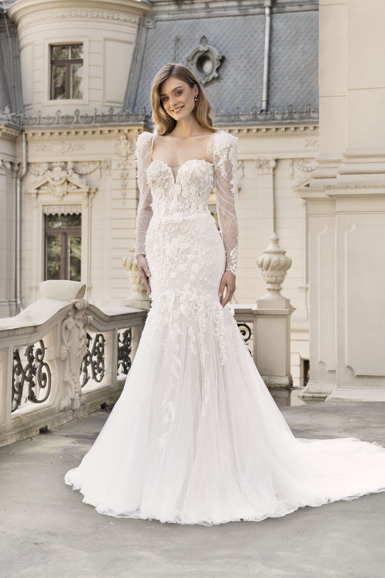 Bogato zdobione suknie ślubne w stylu Full Lace to z pewnością marzenie niejednej Panny Młodej. Bogato zdobiona koronkami i haftami suknia ślubna w klasycznym i ponadczasowym stylu, sprawdzi się idealnie dla każdej odważnej i pewnej siebie kobiety. Gorsetowa suknia ślubna bez ramiączek z dodatkowymi, romantycznymi, bufiastymi rękawkami, które dodają całości jeszcze większego uroku. Poczuj się wyjątkowo w dniu ślubu i postaw na suknię Rybkę, która podkreśli Twoją figurę.